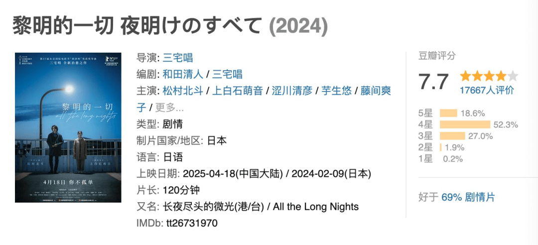 同样是上周上映的院线片,我们之前也介绍过,三宅唱的新片,影片质量还是不错的。