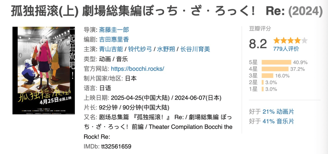 《孤独摇滚》也算是之前的人气番了。这次的剧场版其实是总集篇,分为上下两部,下部应该是五月上映。