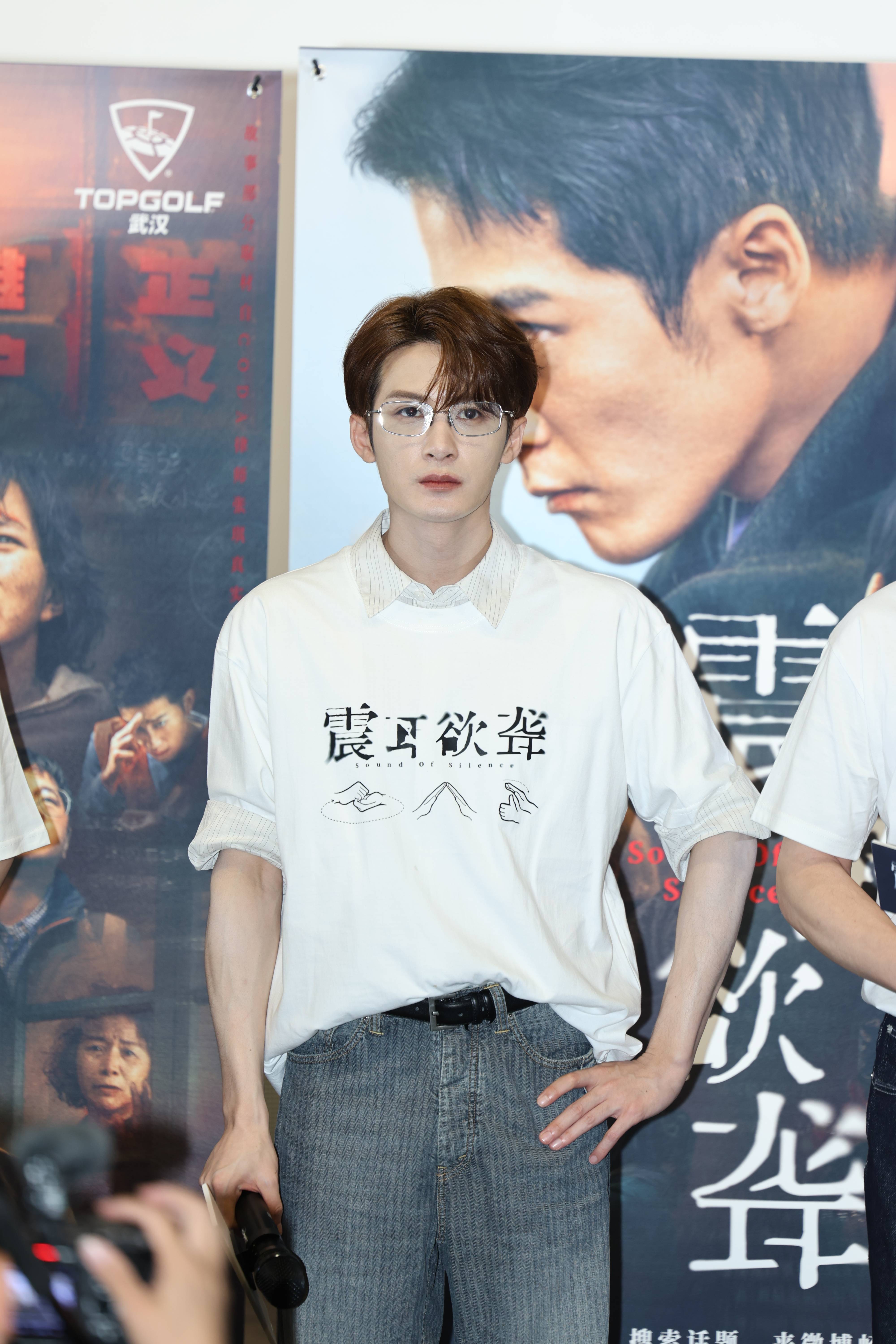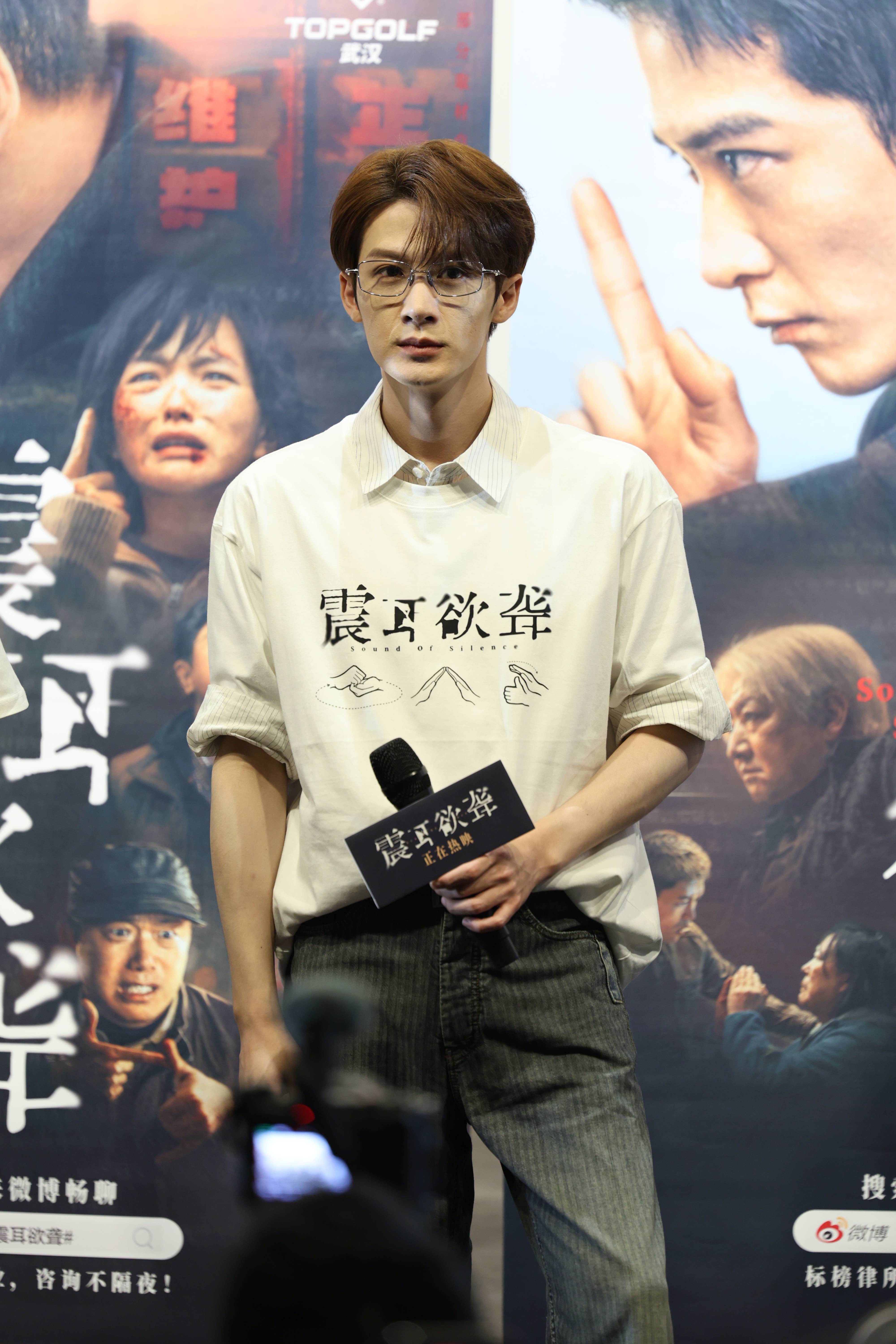 10月8日,电影《震耳欲聋》在上海举行路演,导演万力携主演檀健次、王戈亮相宣传。檀健次戴着金丝眼镜,身穿衬衫搭配T恤叠穿,绅士有型。