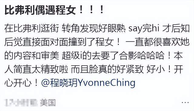 9月28日,有网友分享出在美国比弗利逛街时偶遇到时尚博主程晓玥动态,据悉,现身美国的程晓玥并不是单纯来度假,而是来出差。