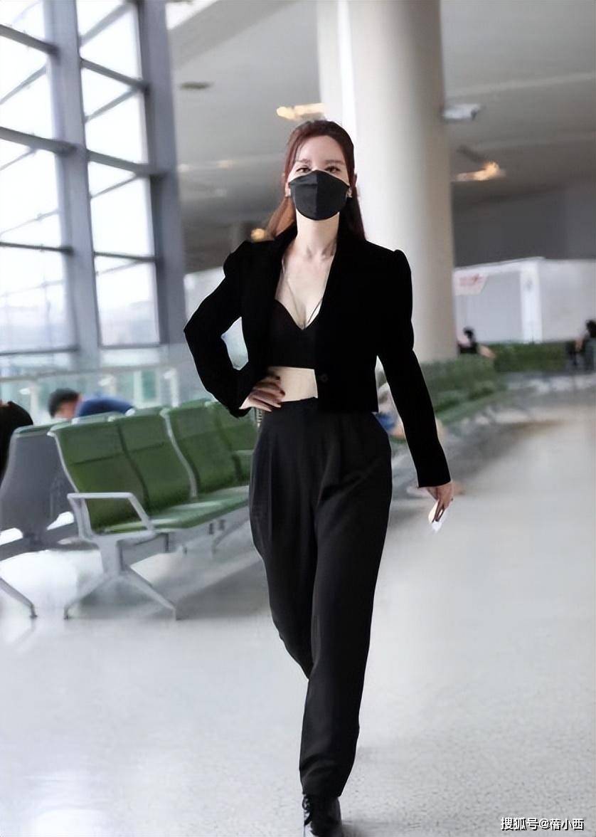 在时尚的舞台上,张萌总是能凭借独特的穿搭品味吸引众人目光,此次现身机场的造型,更是将酷飒与性感完美融合,展现出别样的魅力。上半身,张萌选择了一件黑色短款西装外套。这件西装的剪裁极为考究,利落的线条勾勒出她挺拔的身姿,精致的肩部设计,微微垫肩,增添了几分干练与气场。