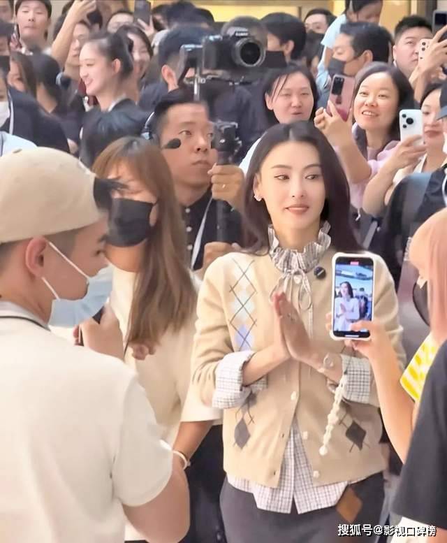 张柏芝热情地与现场的粉丝打招呼,双手合十表示了感谢。