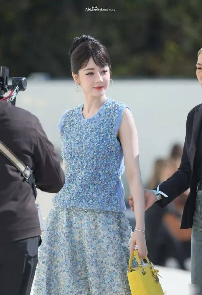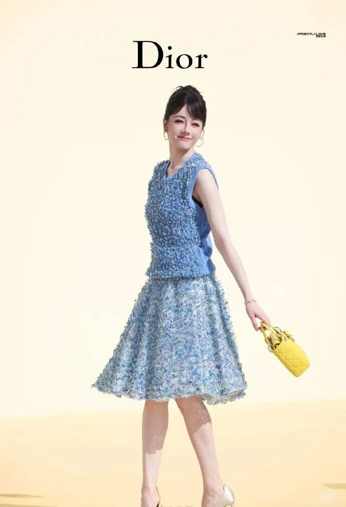 2025年迪奥巴黎时装周,迪丽热巴身穿迪奥蓝色无袖花朵套裙,裙身采用不对称剪裁与重工珠绣工艺,立体刺绣花朵呈现“春日花园”梦幻感,加上她俏脸清丽脱俗,身材曼妙多姿,被媒体称为“真人版BJD娃娃”!