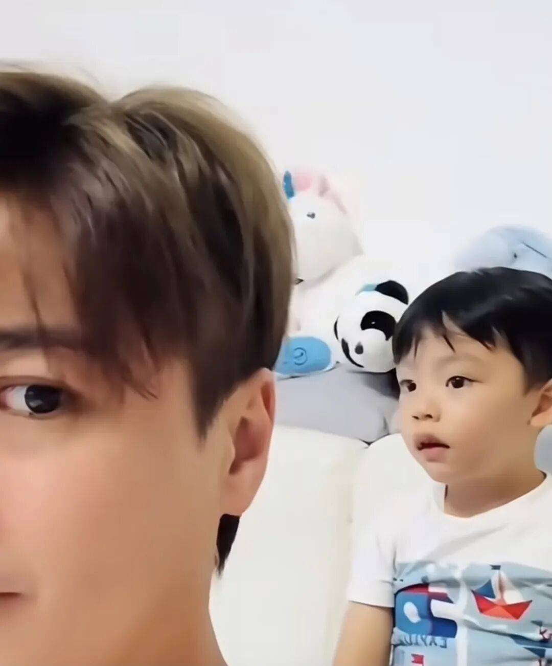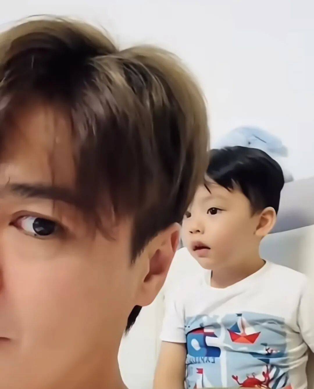 从短片中看得出,当时的罗子溢和一对子女在客厅看电视,而罗子溢一时兴起还捉弄起儿子,他故意用自己的身体挡着小家伙,不让他看电视,虽然小家伙尝试移动身体,但是罗子溢依旧挡在其身前,最后小家伙着急了,直接用手打爸爸的脸。