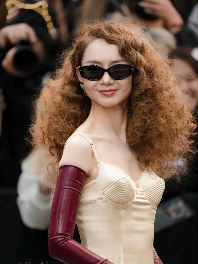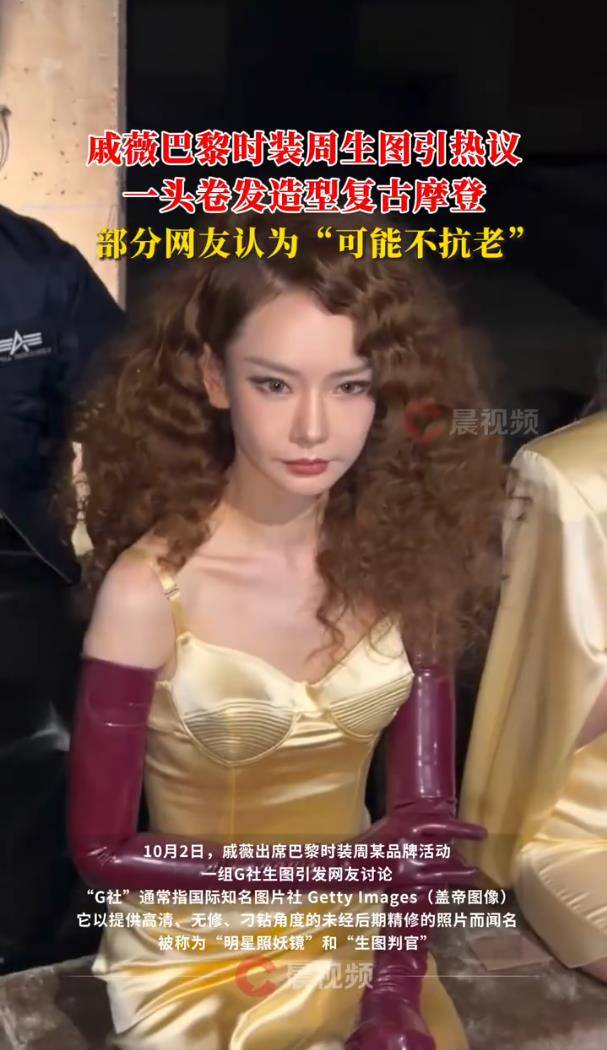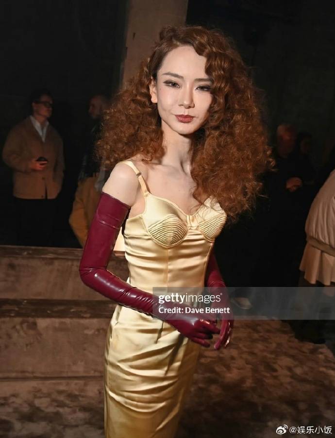 10月5日,戚薇在Mugler秀场的一组G社(Getty Images)生图突然刷屏,直接引爆了网友对“明星真实状态”的激烈讨论。镜头里,她身穿金色吊带长裙搭配酒红色漆皮手套,顶着贴头皮盘发,却被俯拍、怼脸特写拍成了“一米二身材”和疲态尽显的脸,瞬间被嘲“医美后遗症发作”“老了十岁”。