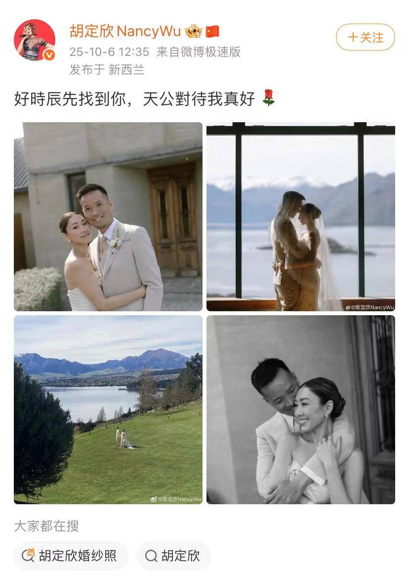 TVB实力派女演员胡定欣晒出结婚照,IP地址显示在新西兰。