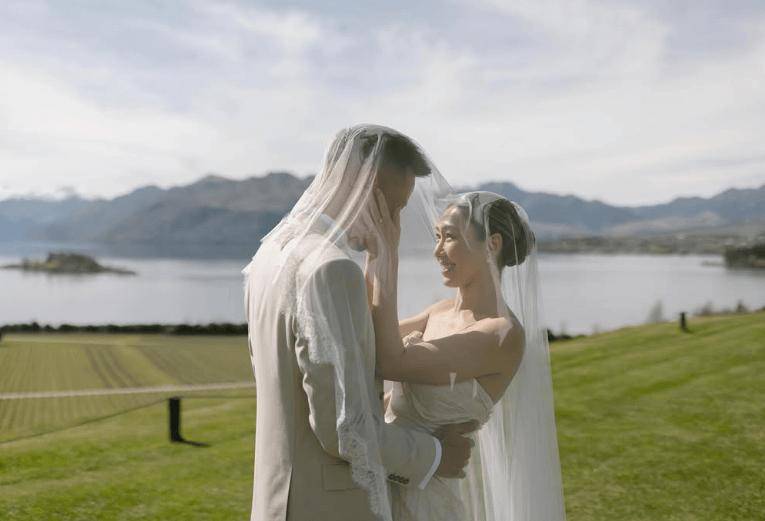 从照片中可见,婚礼在国外举行,现场有大片开阔的草地。胡定欣首批发布的婚照共五张,包含切蛋糕、手牵手等温馨画面,之后她又加码晒出更多婚照,既有自己抱着老公的正面照,也有老公从身后环抱她的超闪合照。
