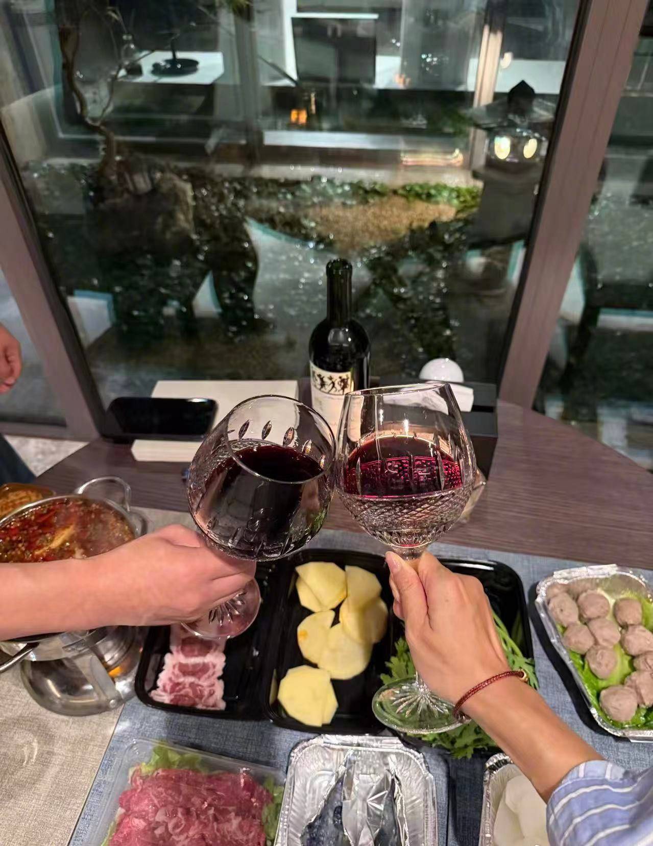 两人吃的是川味火锅,很麻辣的那种,互相碰杯,这二人世界,也是令人羡慕不已。