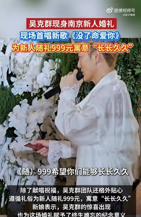更让新人措手不及的,是偶像递上的那个999元的红包并说出希望你们可以长长久久。事后,梅琴透露:“吴克群并没有收取费用,还送了999元红包。”这笔看似寻常的礼金,被吴克群赋予了“长长久久”的深刻寓意。这已不是一次商业站台,而是一次真心实意的“随份子”,是作为一位朋友,而非一个明星,对一段崭新人生的郑重祝贺。