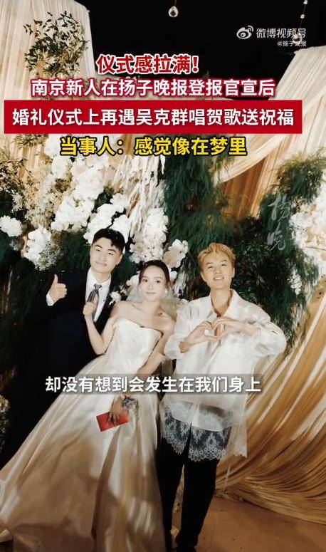 而这场奇遇的起点,或许早在今年5月21日就已埋下。梅琴与丈夫选择了一个颇具复古浪漫意味的举动——在《扬子晚报》上刊登结婚启事。梅琴坦言:“我们很喜欢用传统媒体记录人生重要日子的方式,这样可以永远保存下来,方便以后都可以看,这种感觉真好。”这份对纸质墨香的情有独钟,与吴克群用实体红包、现场真唱所传递的“实体温度”,在精神内核上不谋而合。