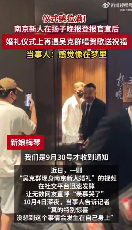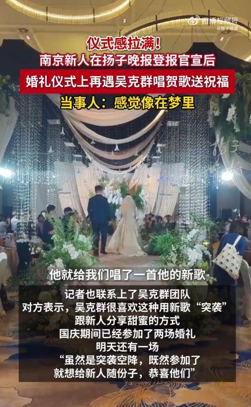 婚礼流程单上“艺人送祝福”的环节仍被当作婚庆公司制造的悬念时,谁也没料到,这份神秘大礼的重量足以让全场宾客尖叫——10月1日,江苏南京一场寻常的婚礼,因歌手吴克群的空降,瞬间变成了独一无二的记忆现场。