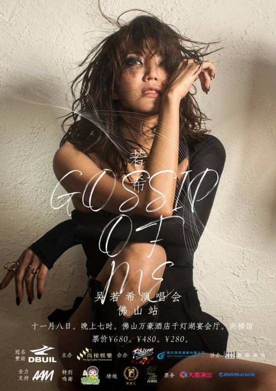 由DBUIL冠名赞助的吴若希《Gossip of Me》演唱会——佛山站,将于11月8日晚上7点在佛山万豪酒店千灯湖宴会厅•尚梯馆隆重举行,票价分别为680(含合影福利) / 480 / 280三种,门票已于10月8日(星期三)中午12点开始在“大麦”和“携程”公开发售。