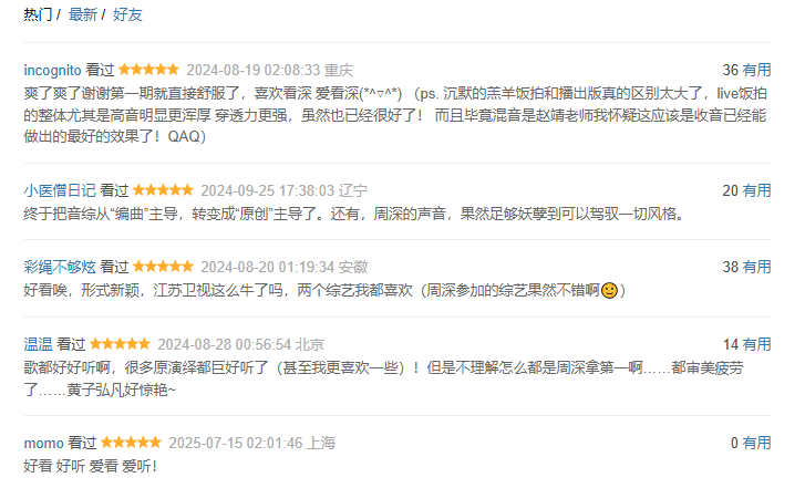 《音乐缘计划》第一季之所以取得了清一色的好评,主要原因是,节目内容形式新颖,观众们不仅可以获得开心的追综艺体验,并且能够在这档音乐综艺当中听到好听且原创的音乐内容。尤其是在原创音乐方面,《音乐缘计划》有着自己独特的魅力。放眼咱们当下的原创音乐综艺,最为成功的,应该便是《音乐缘计划》了。