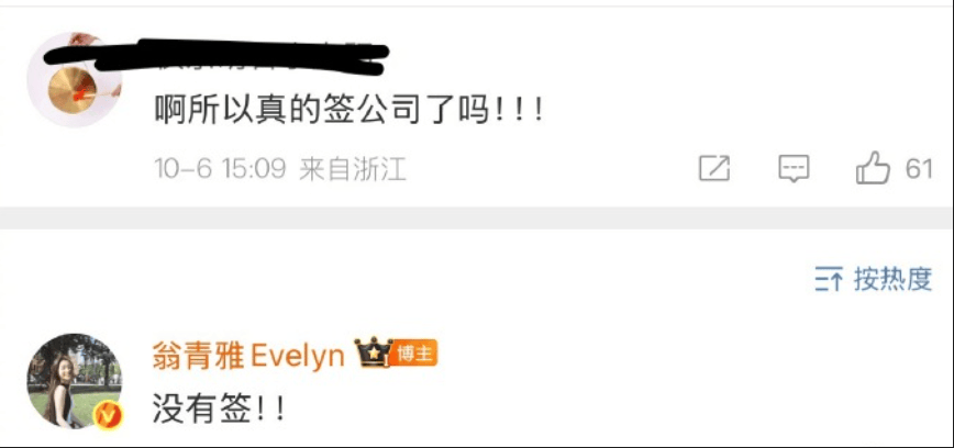 对于此消息,翁清雅在社交平台亲自否认签约“小兰花娱乐”的传闻,明确表示“没有签!”,强调网传签约海报不实。